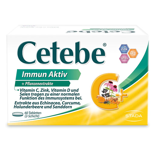 Ob in der Erkältungszeit, bei Stress oder starker körperlicher Belastung – es gibt Zeiten, in denen Ihre Abwehrkräfte besonders gefordert sind. Unser Immunsystem ist entscheidend für unsere Gesundheit, denn es schützt uns vor Infekten. Cetebe® Immun Aktiv unterstützt besonders in diesen Zeiten Ihre Abwehrkräfte durch die wertvolle Kombination aus essenziellen Vitaminen und Mineralstoffen (Vitamin C, D3, Zink und Selen) sowie ausgesuchten Pflanzenextrakten aus Echinacea, Curcuma, Holunderbeere und Sanddorn.