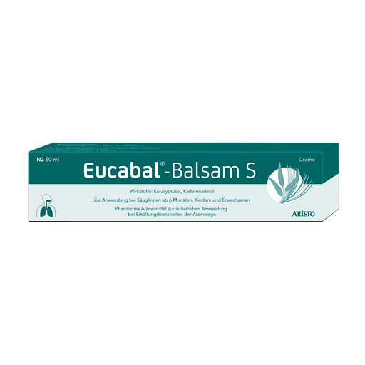 Der Eucabal®-Erkältungsbalsam mit Eukalyptus- und Kiefernnadelöl verflüssigt und löst zähen Schleim und befreit damit die Atemwege. Der Balsam enthält kein Campher und Menthol. Damit ist er besonders mild und bereits für Säuglinge ab 6 Monaten zugelassen (bis 23 Monate nur zur Rückeneinreibung). Der Balsam eignet sich weiterhin zur Inhalation (ab 6 Jahren unter Aufsicht). Zum Inhalieren geben Sie einfach eine kleine Menge in einen Inhalator und gießen heißes Wasser auf.