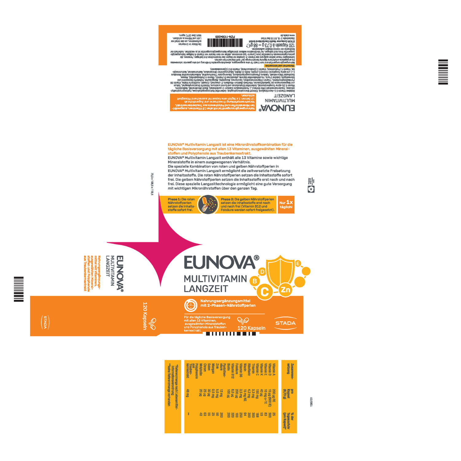 EUNOVA® LANGZEIT ist für Diabetiker geeignet (bei Anrechnung von weniger als 0,02 Broteinheiten (BE) pro Kapsel).