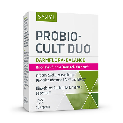 Zum einen enthält ProBio-Cult® Duo Riboflavin für die Erhaltung der Darmschleimhaut sowie Folsäure, Vitamin B12 und D für die normale Funktion des Immunsystems. Zum anderen die zwei ausgewählten Bakterienstämme LA-5® und BB-12®. So unterstützt ProBio-Cult® Duo den Körper gleich doppelt.