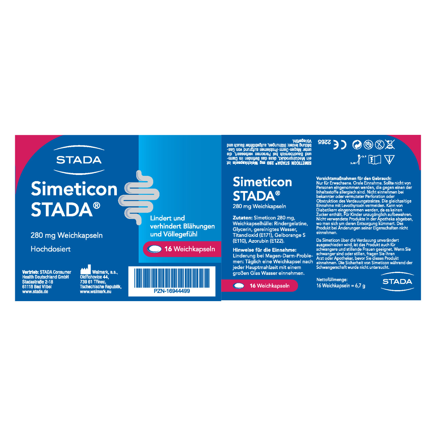 1 Weichkapsel Simeticon STADA® enthält 280 mg Simeticon.